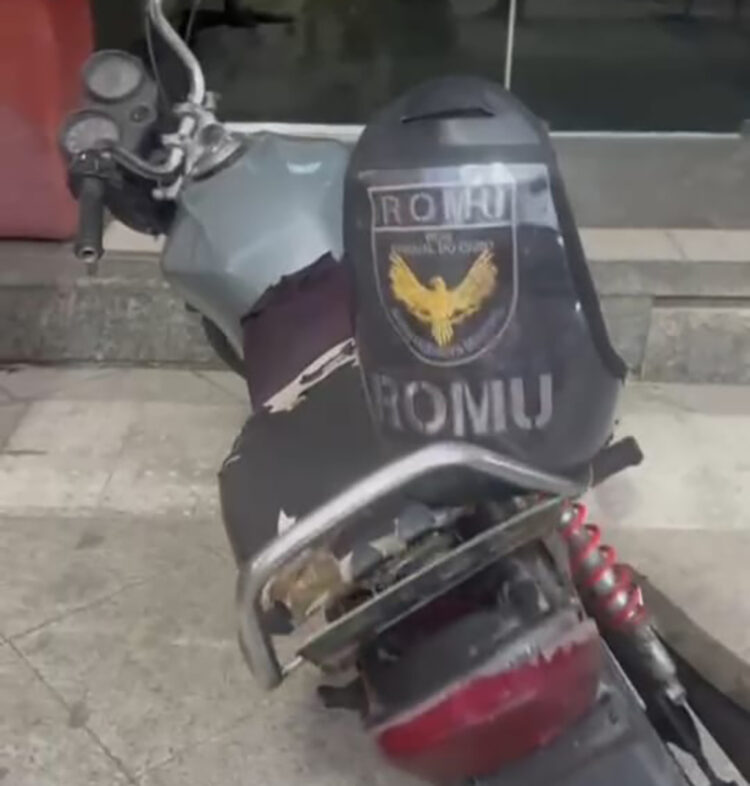 De acordo com informações dos agentes, o motociclista trafegava sem capacete e sem placa de identificação no veículo. Ao ser abordado, desobedeceu à ordem de parada e empinou a moto diante da equipe da ROMU, fugindo logo em seguida.