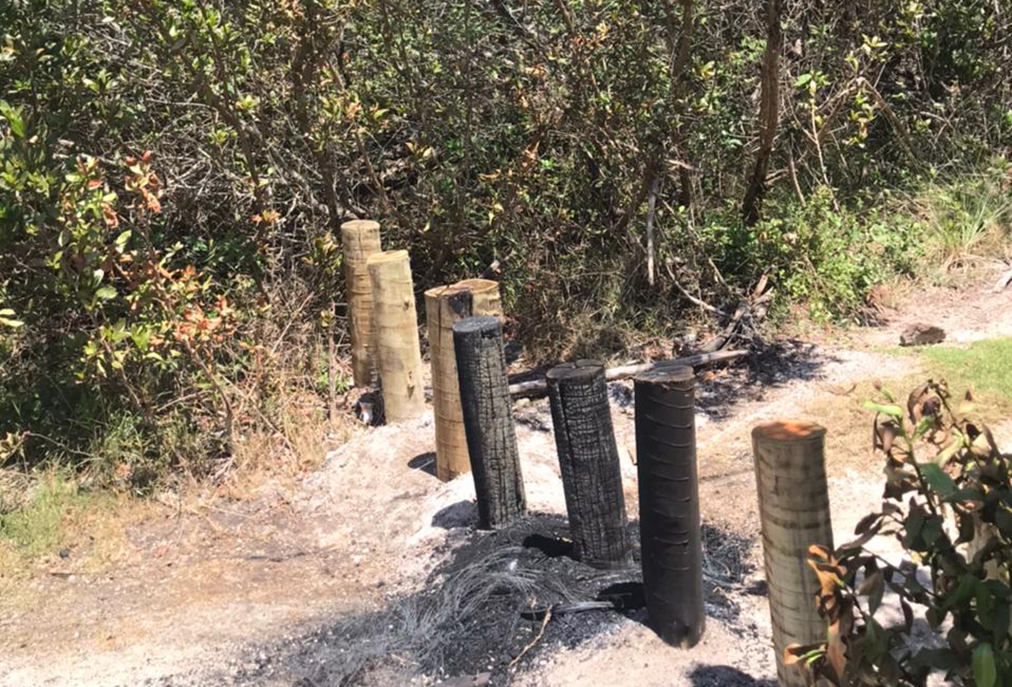 Os mourões instalados pela Prefeitura de Arraial do Cabo para barrar a entrada clandestina de veículos na Trilha Translagunar, no bairro Caiçara, amanheceram carbonizados nesta segunda-feira (17). As estruturas haviam sido colocadas recentemente pela Secretaria de Ambiente e Saneamento, depois de denúncias sobre a circulação de carros de passeio, buggys e motos em área onde o tráfego é proibido.