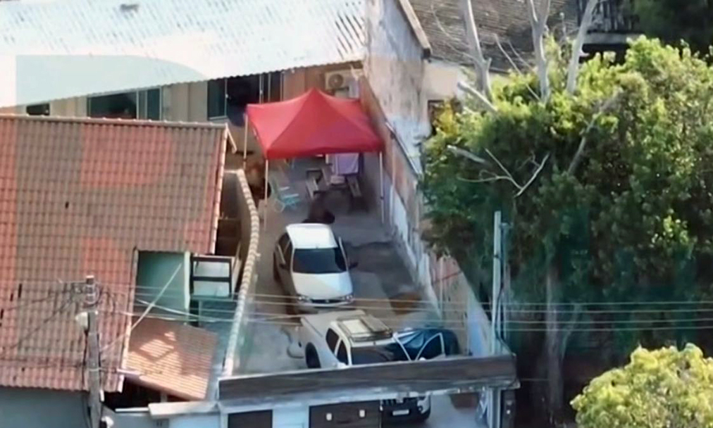 As imagens foram captadas por drone e revelam o trabalho de monitoramento realizado por agentes da 126ª delegacia de polícia de Cabo Frio, com apoio da polícia militar. O equipamento aéreo acompanha os suspeitos à distância e, em determinado momento, utiliza o recurso de aproximação para registrar em tempo real a movimentação do grupo antes da abordagem.