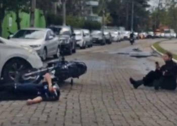 Duas pessoas ficaram feridas após uma colisão entre um carro e uma motocicleta no bairro Palmeiras, em Cabo Frio, na ...