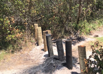 Os mourões instalados pela Prefeitura de Arraial do Cabo para barrar a entrada clandestina de veículos na Trilha Translagunar, no ...
